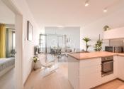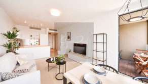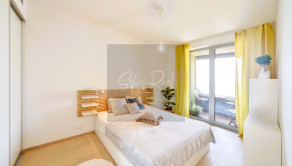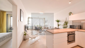 - kompletne zariadený byt vrátane elektrospotrebičov: kuchynská linka so zabudovanými spotrebičmi (umývačka riadu, chladnička, teplovzdušná rúra, indukčná varná doska, mikrovlnná rúra, práčka)