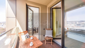 Priestranný a svetlý 2-izbový byt v rezidenčnom projekte SKY PARK na Továrenskej ulici v Starom Meste, situovaný v novom centre mesta v bezprostrednej blízkosti historického jadra a nábrežia Dunaja.